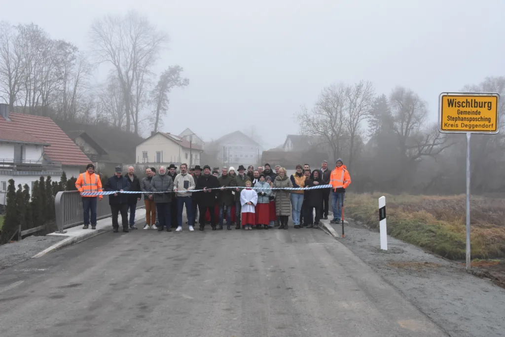 Im Ortsteil Wischlburg (Pfarrei Stephansposching) konnte am 22. Dezember 2025 nach erfolgreicher Fertigstellung die erneuerte Brücke für den Verkehr freigegeben werden. Anwesend waren unter anderem Staatsminister Christian Bernreiter, Landrat Bernd Siebler, die stellvertretenden Landräte Roman Fischer und Josef Färber, Bürgermeisterin Jutta Staudinger sowie weitere Vertreter aus der Politik. Nicht fehlen durften ebenso die mit der Planung und Durchführung der Maßnahme betrauten Verantwortlichen sowie die ausführenden Firmen. Den kirchlichen Segen spendete Ortspfarrer P. Gregor Schuller OSB zusammen mit dem evangelischen Kollegen Rainer Datzke-Scherm.