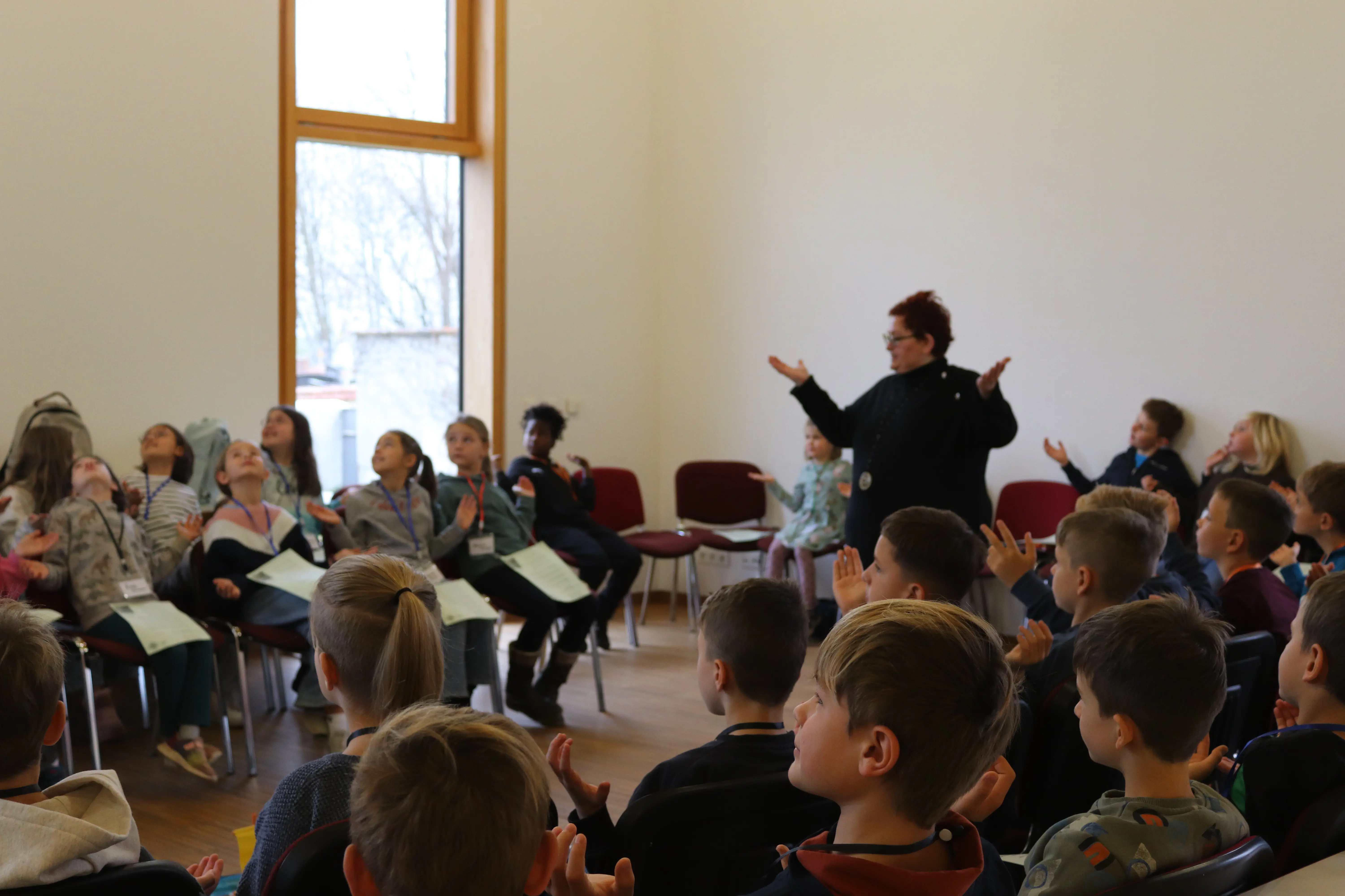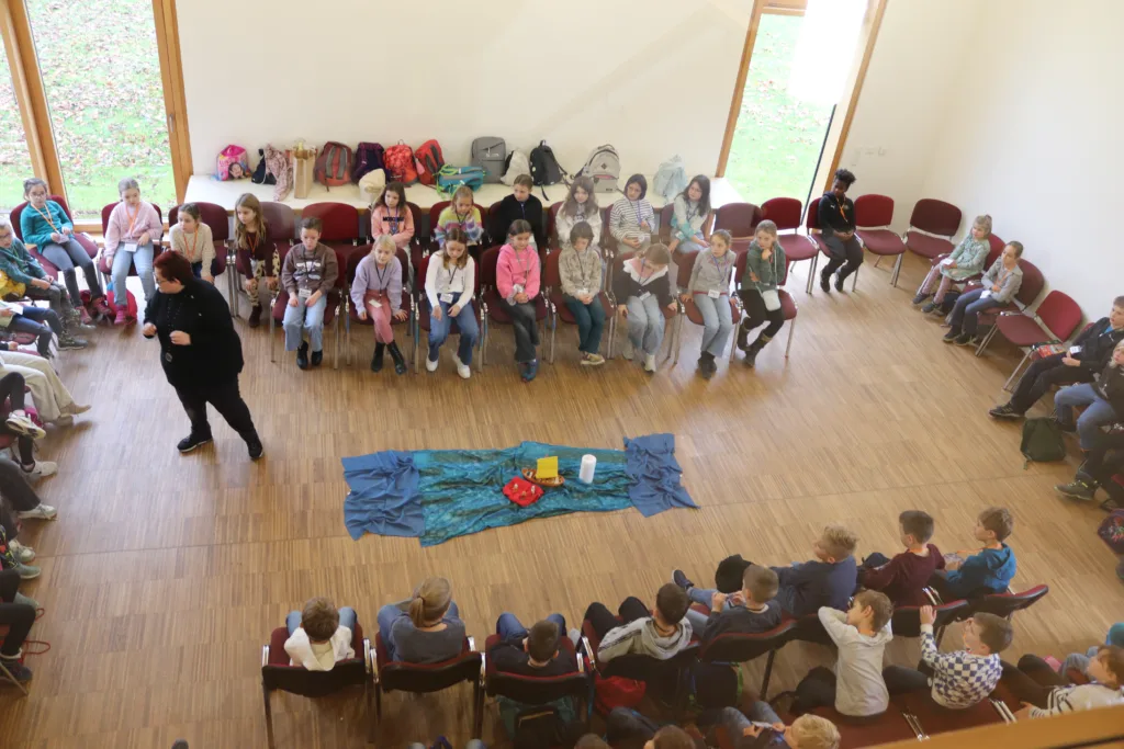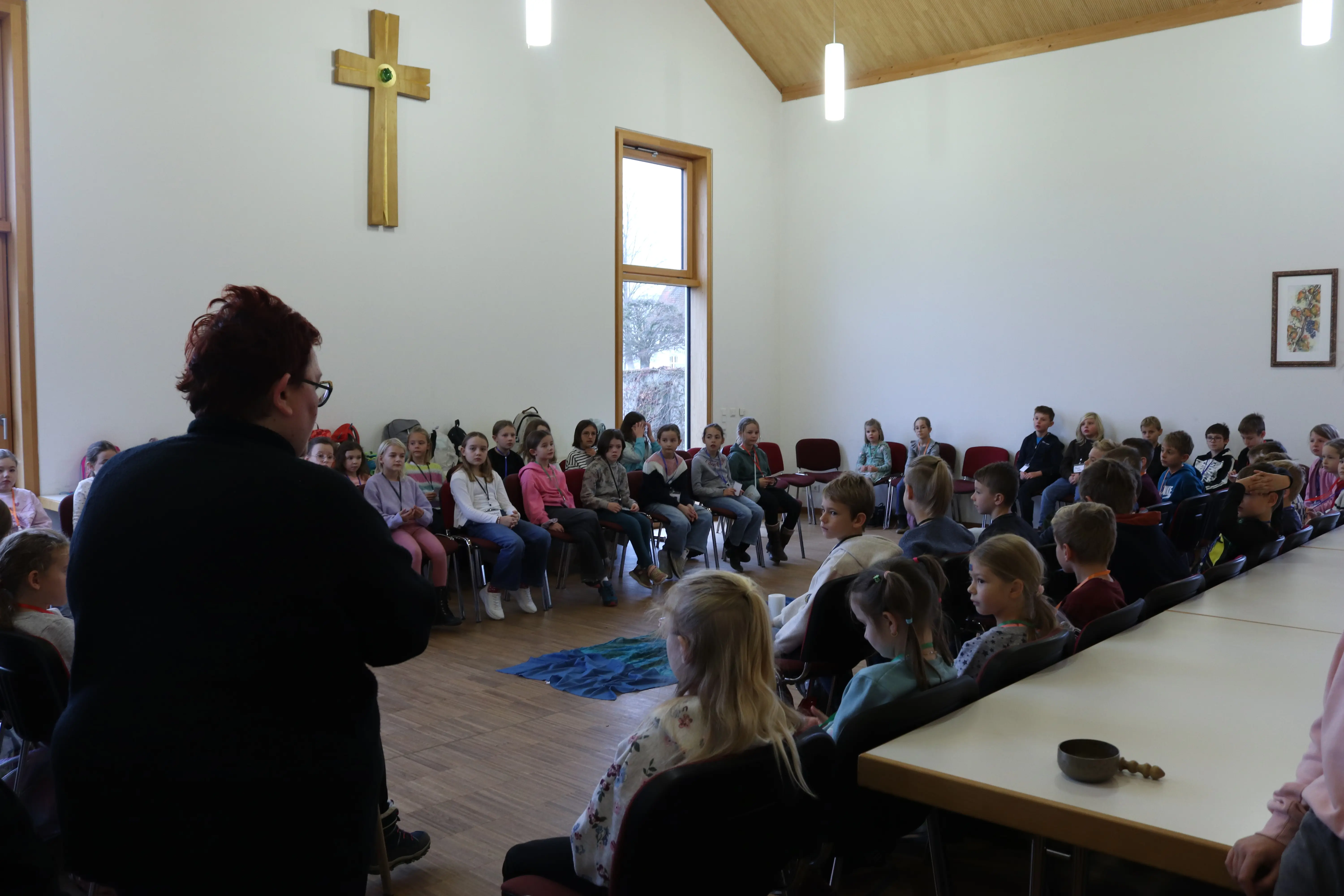 Unter der Leitung von Gemeindereferentin Gabriele Dintner leiteten Erwachsene und Jugendliche kreative Stunden an. Die Kinder lauschten gebannt der Erzählung, um anschließend darüber zu sprechen, zu basteln, zu beten und zu singen. Es gab keine Minute der Langeweile auch wegen einer gemeinsamen Pause mit mitgebrachter Brotzeit, Keksen und Gummibärchen sowie Spielen im Freien.