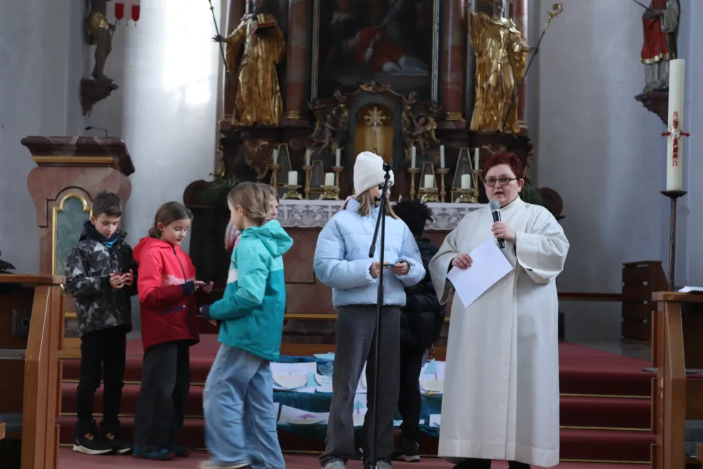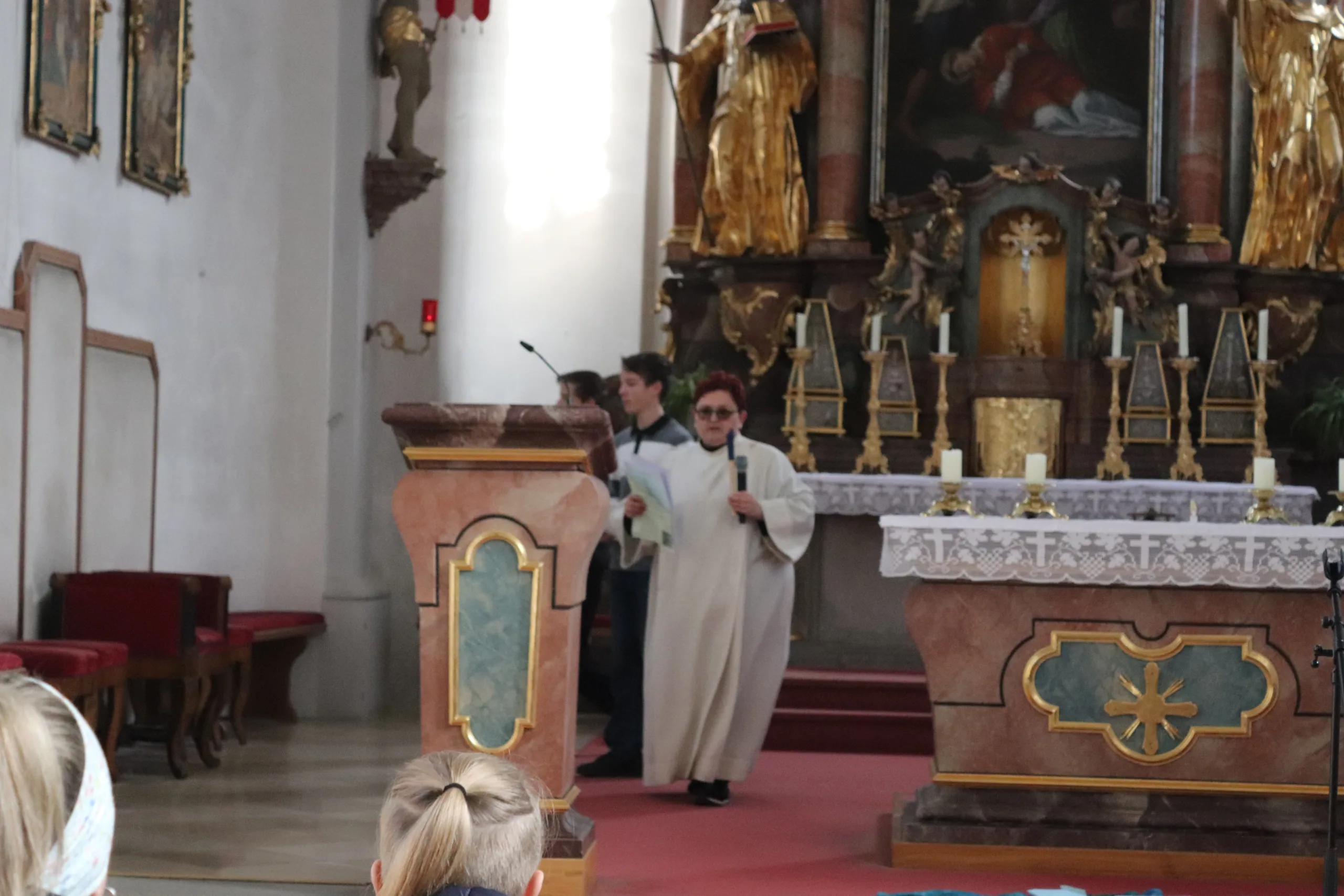 Zum Abschluss feierten alle Teilnehmer einen Wortgottesdienst in die Pfarrkirche, bei dem sich die Kinder mit einzelnen Beiträgen aktiv einbringen konnten.