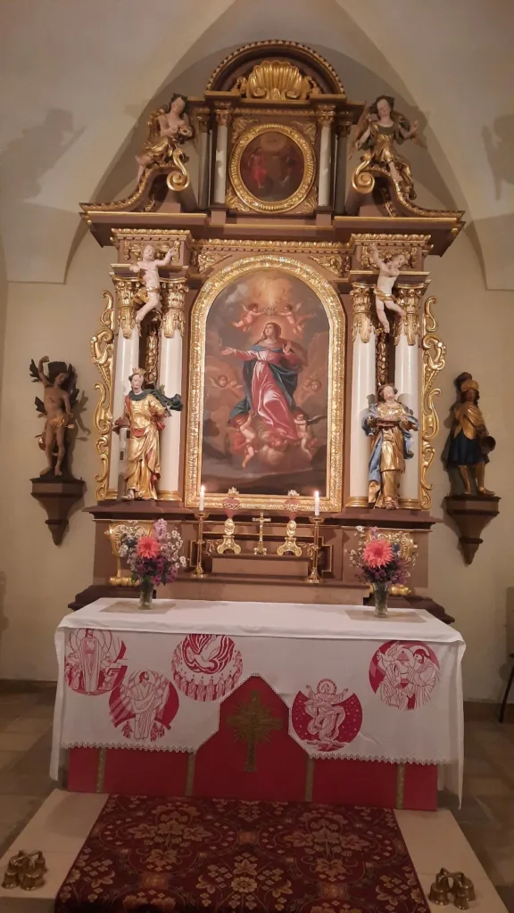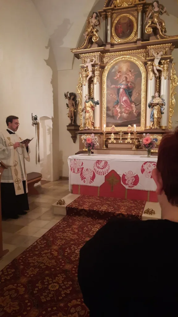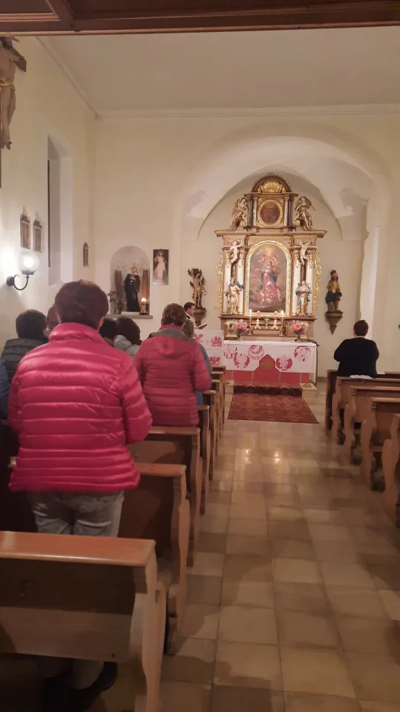 Oktoberrosenkranz des FMV Stephansposching in der Kapelle in Uttenhofen.
