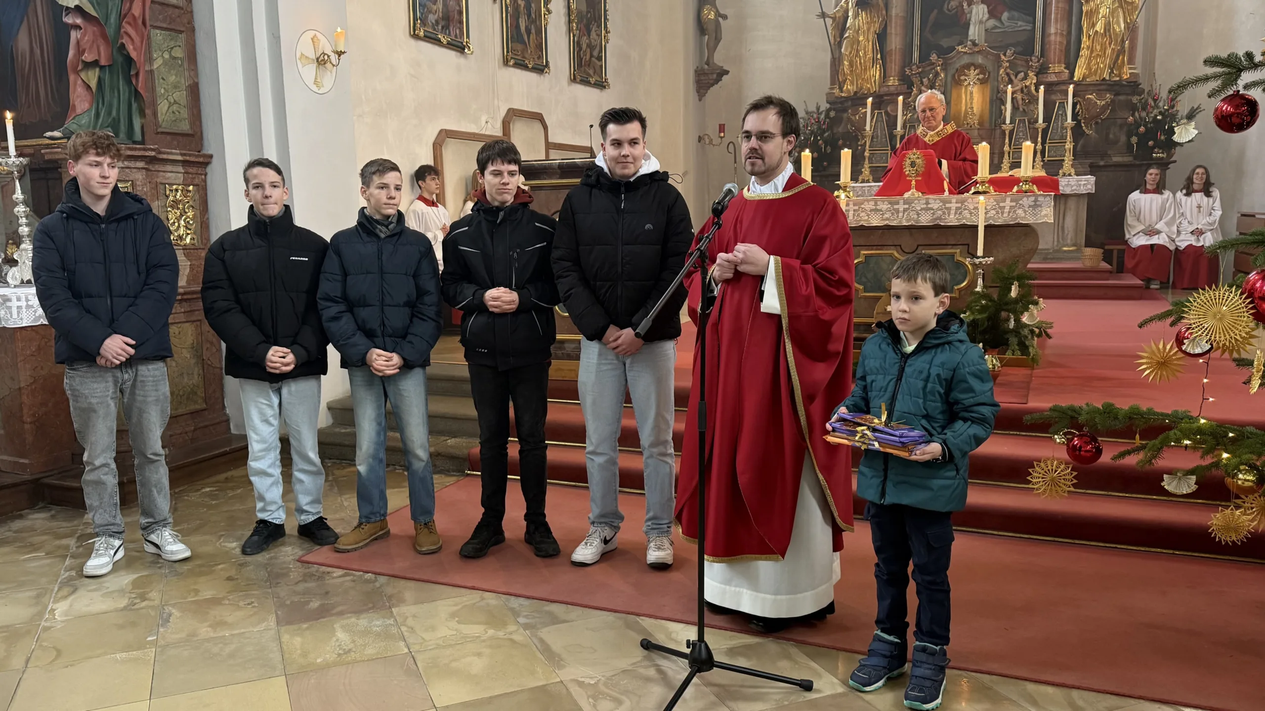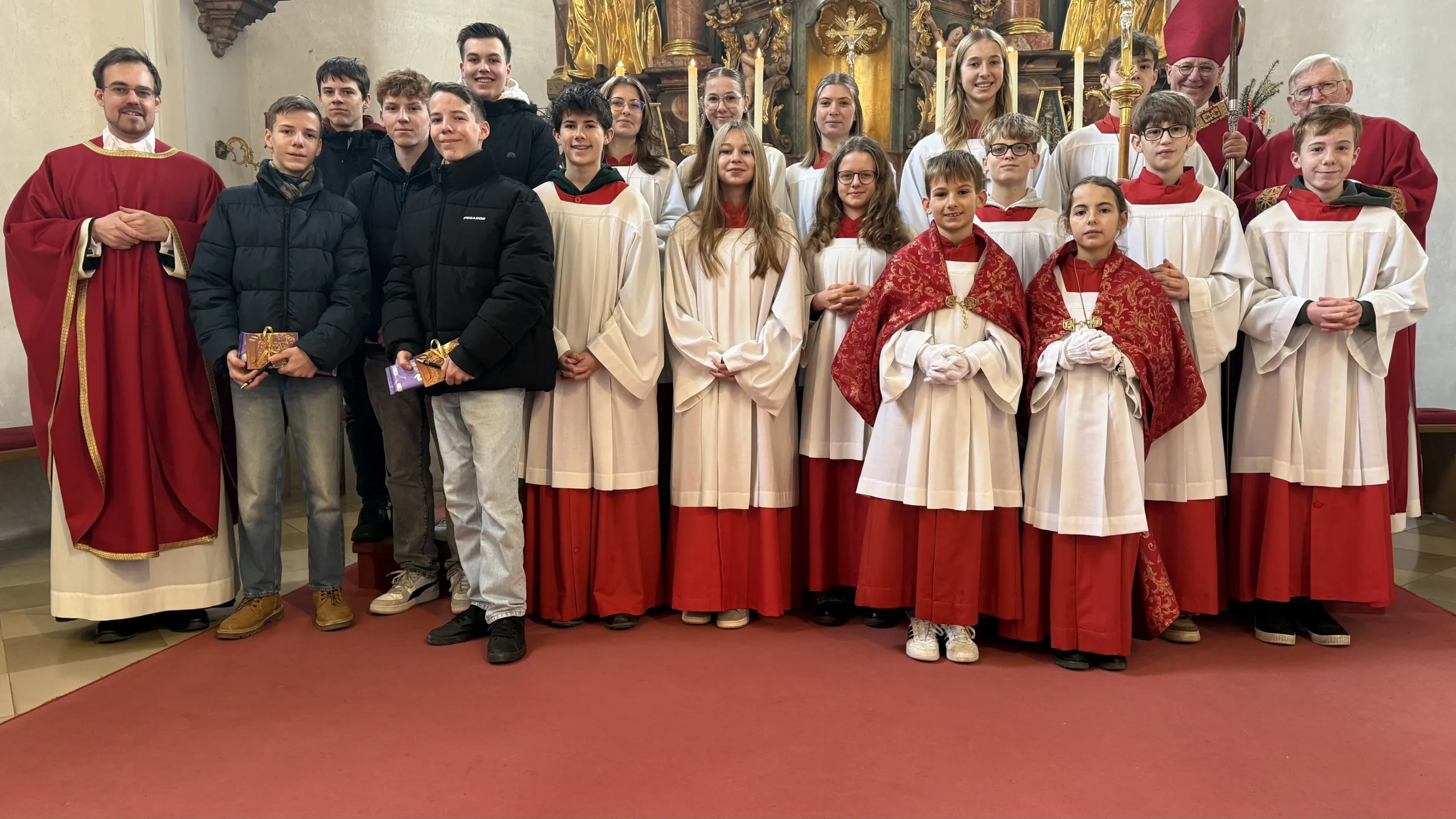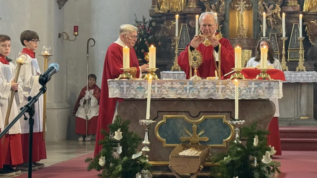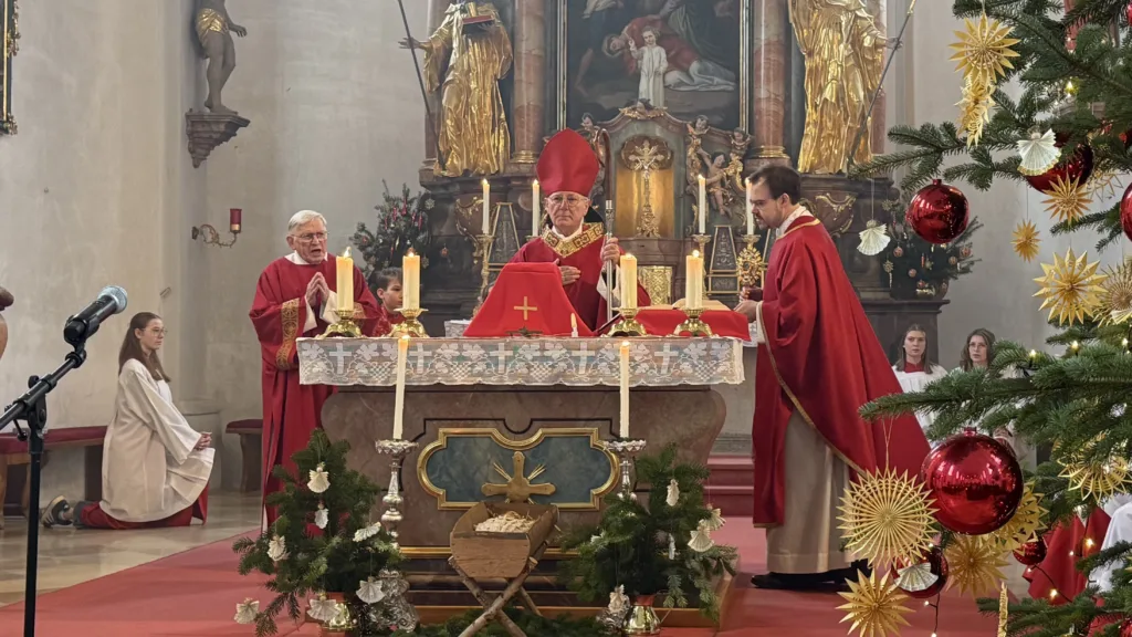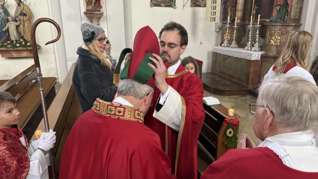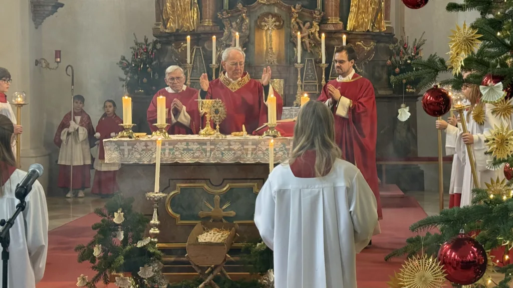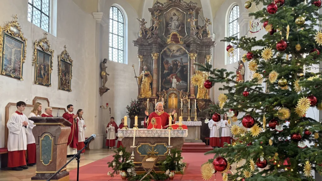 Der Hl. Stephanus, der erste Märtyrer der Kirche, ist nicht nur der Patron der Pfarrkirche, sondern auch des Ortes Stephansposching. Unter zahlreicher Beteiligung der Gläubigen konnte Abt Athanasius, der der Einladung von Ortspfarrer Pater Gregor gerne gefolgt ist, diesen Festtag mit der Pfarrei Stephansposching feiern. Gegen Ende des Pontifikalamtes wurden fünf Ministranten verabschiedet, die im Verlauf des vergangenen Jahres ihren Dienst beendet haben. Pater Gregor dankte ihnen für ihren langjährigen, treuen und zuverlässigen Dienst und wünschte ihnen für die Zukunft Gottes Segen. Mitgestaltet wurde der Festgottesdienst vom Frauenchor Stephansposching, Korbinian Huber spielte die Orgel.