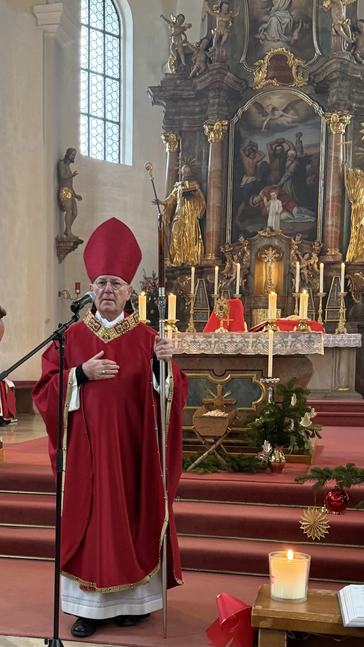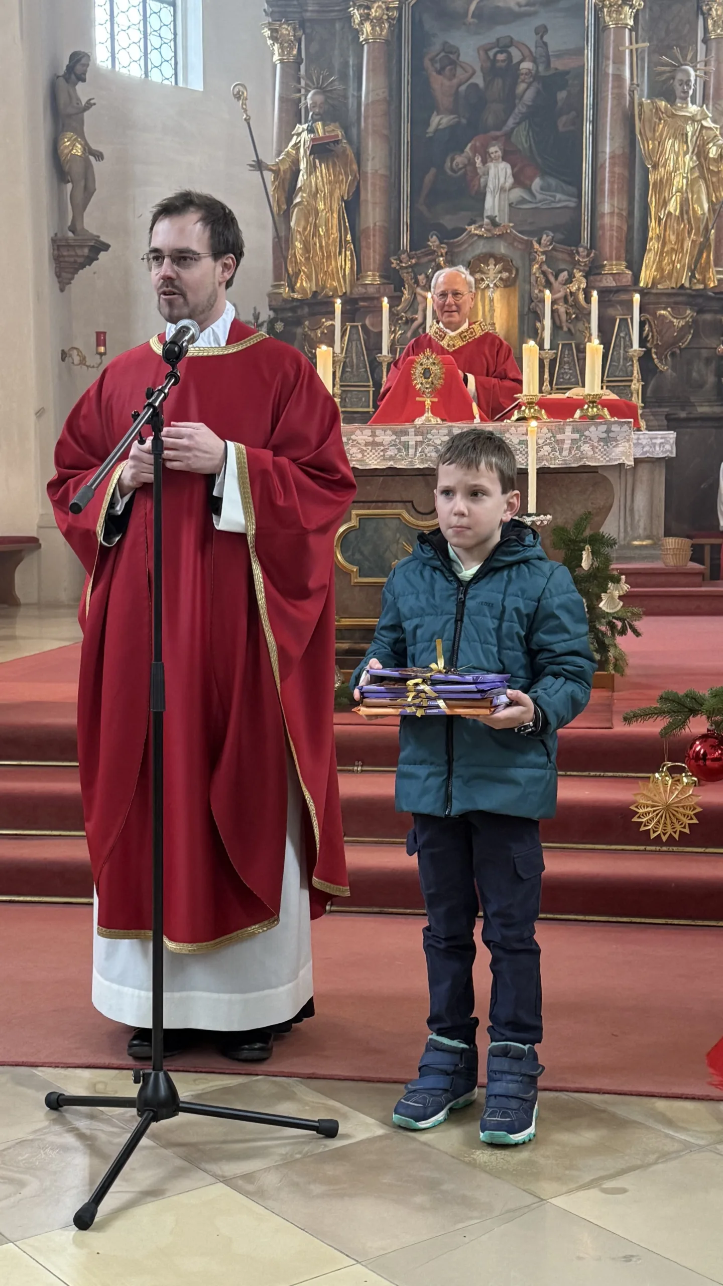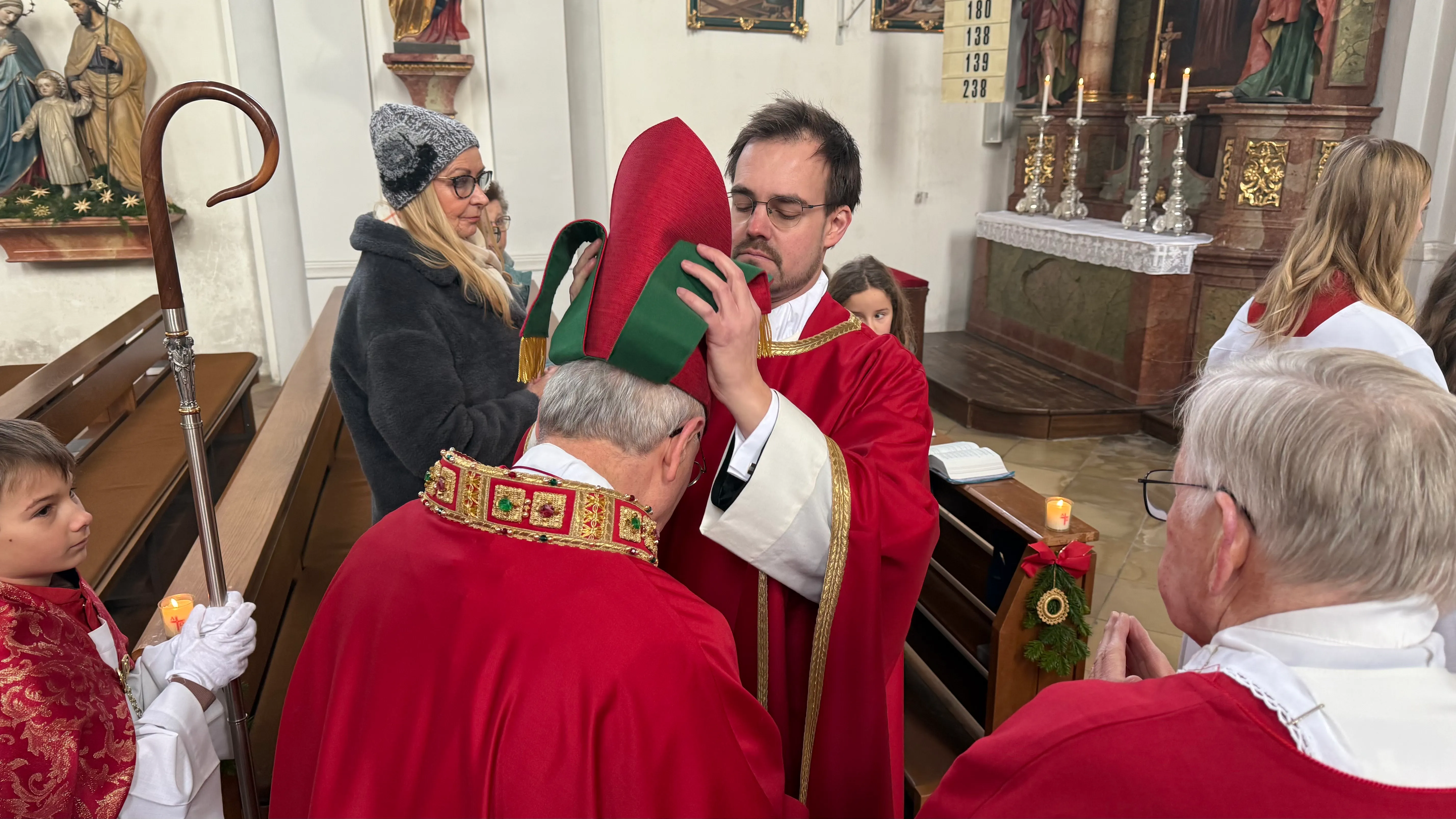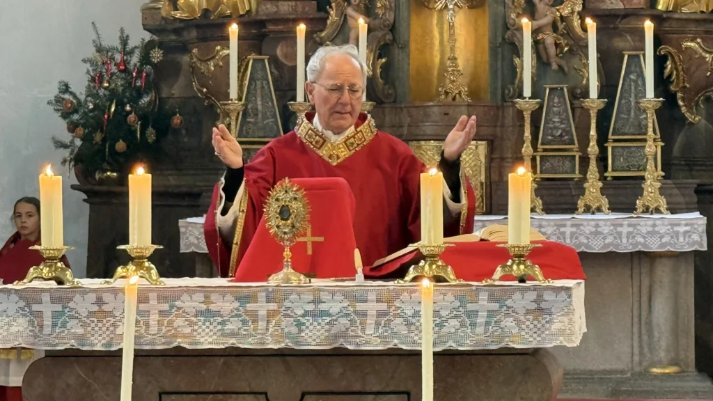 Der Hl. Stephanus, der erste Märtyrer der Kirche, ist nicht nur der Patron der Pfarrkirche, sondern auch des Ortes Stephansposching. Unter zahlreicher Beteiligung der Gläubigen konnte Abt Athanasius, der der Einladung von Ortspfarrer Pater Gregor gerne gefolgt ist, diesen Festtag mit der Pfarrei Stephansposching feiern. Gegen Ende des Pontifikalamtes wurden fünf Ministranten verabschiedet, die im Verlauf des vergangenen Jahres ihren Dienst beendet haben. Pater Gregor dankte ihnen für ihren langjährigen, treuen und zuverlässigen Dienst und wünschte ihnen für die Zukunft Gottes Segen. Mitgestaltet wurde der Festgottesdienst vom Frauenchor Stephansposching, Korbinian Huber spielte die Orgel.