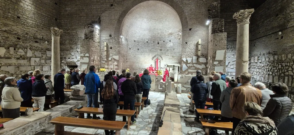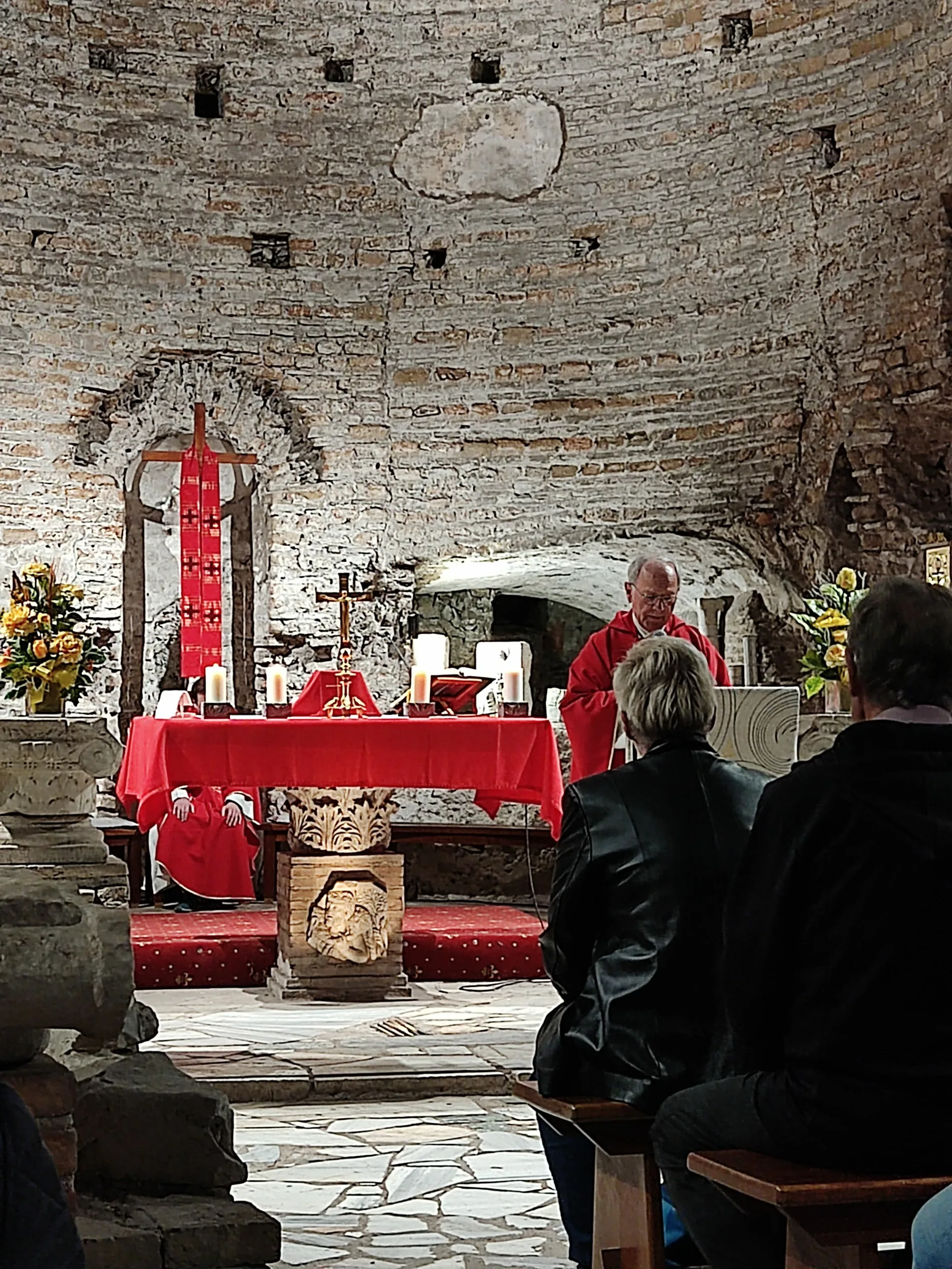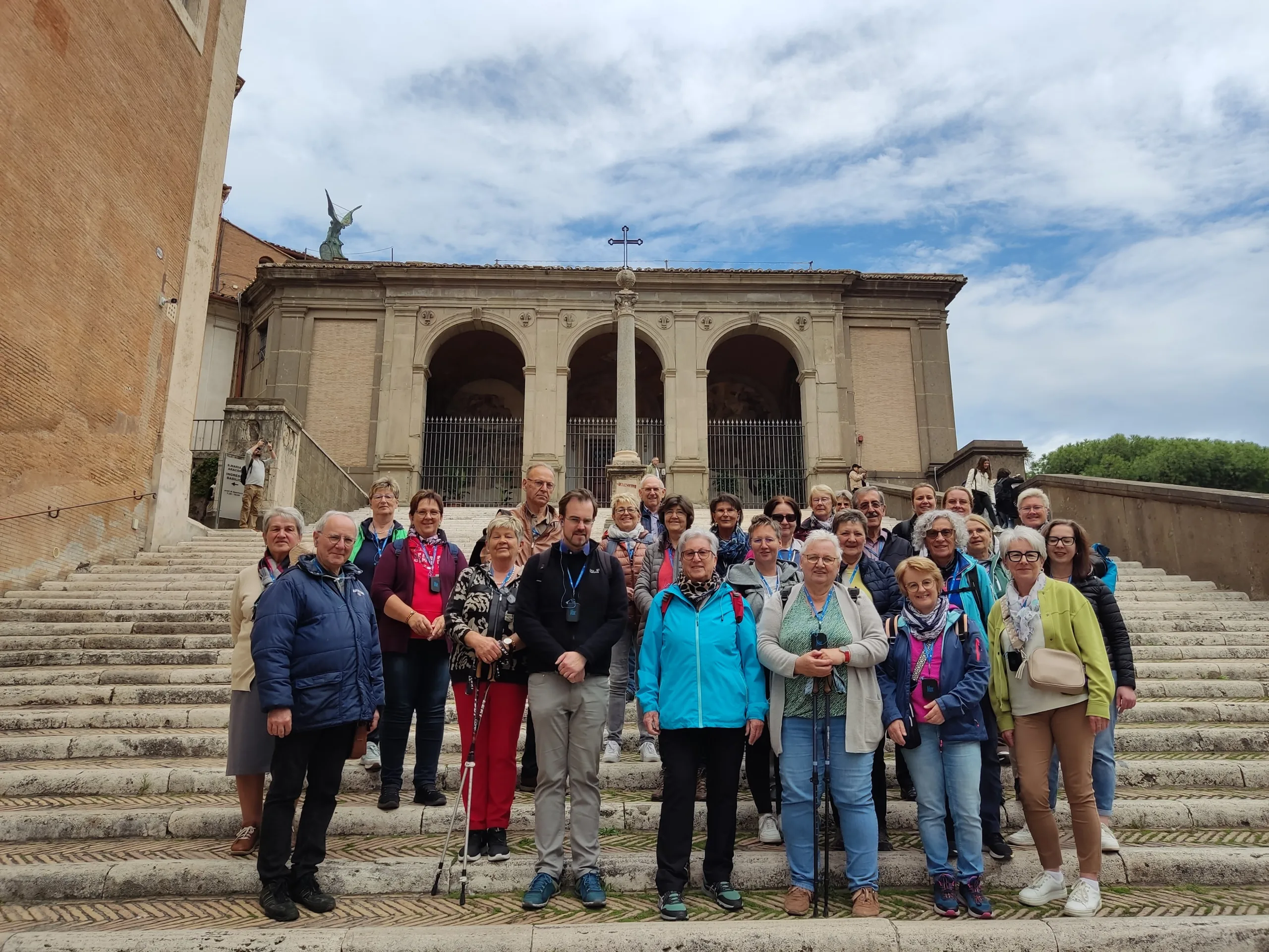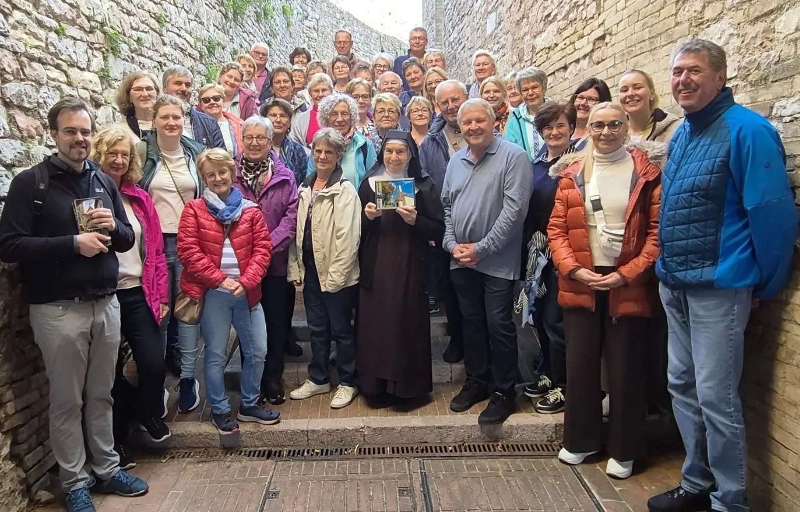 Eine stattliche Anzahl von 54 Personen aus der Pfarreiengemeinschaft „KIoster Metten und Umgebung“ nutzte das Heilige Jahr für eine Pilgerfahrt nach Rom. Die Pilgerinnen und Pilger aus den Pfarreien Michaelsbuch, Stephansposching, Metten und Neuhausen brachen in den frühen Morgenstunden des 3. November mit dem Bus in Richtung der ewigen Stadt Rom auf. Dort angekommen stand zunächst der Besuch der historischen Stätten im antiken sowie im barocken Rom auf dem Programm. Höhepunkt der Pilgerfahrt war natürlich das Durchschreiten der nur während des Heiligen Jahres geöffneten „Heiligen Pforten“ in den Basiliken St. Peter, St. Paul, Lateran sowie Maria Maggiore. Der Besuch der Papstaudienz am Mittwochvormittag zusammen mit etwa 130.000 weiteren Rompilgern bildete einen weiteren unvergesslichen Moment dieser erlebnisreichen wie auch anstrengenden Woche. Nachdem die Gruppe am Freitagnachmittag in den Domitilla-Katakomben gemeinsam Gottesdienst feiern konnte, traten die Pilger am Samstag, 8. November, nach dem Frühstück wieder die Heimreise an. Bei der Rückfahrt konnte man sich besonders über einen kurzen Besuch des Klosters „Santa Croce“ in Assisi freuen. Die Gründung dieses Klosters geht auf vier leibliche Schwestern aus Steinkirchen (Pfarrei Michaelsbuch) zurück, die im Jahr 1720 zu diesem Zweck nach Assisi auswanderten. Um viele Eindrücke reicher und geistlich gestärkt erreichte die muntere Pilgergruppe gesund und munter wieder die Heimat.