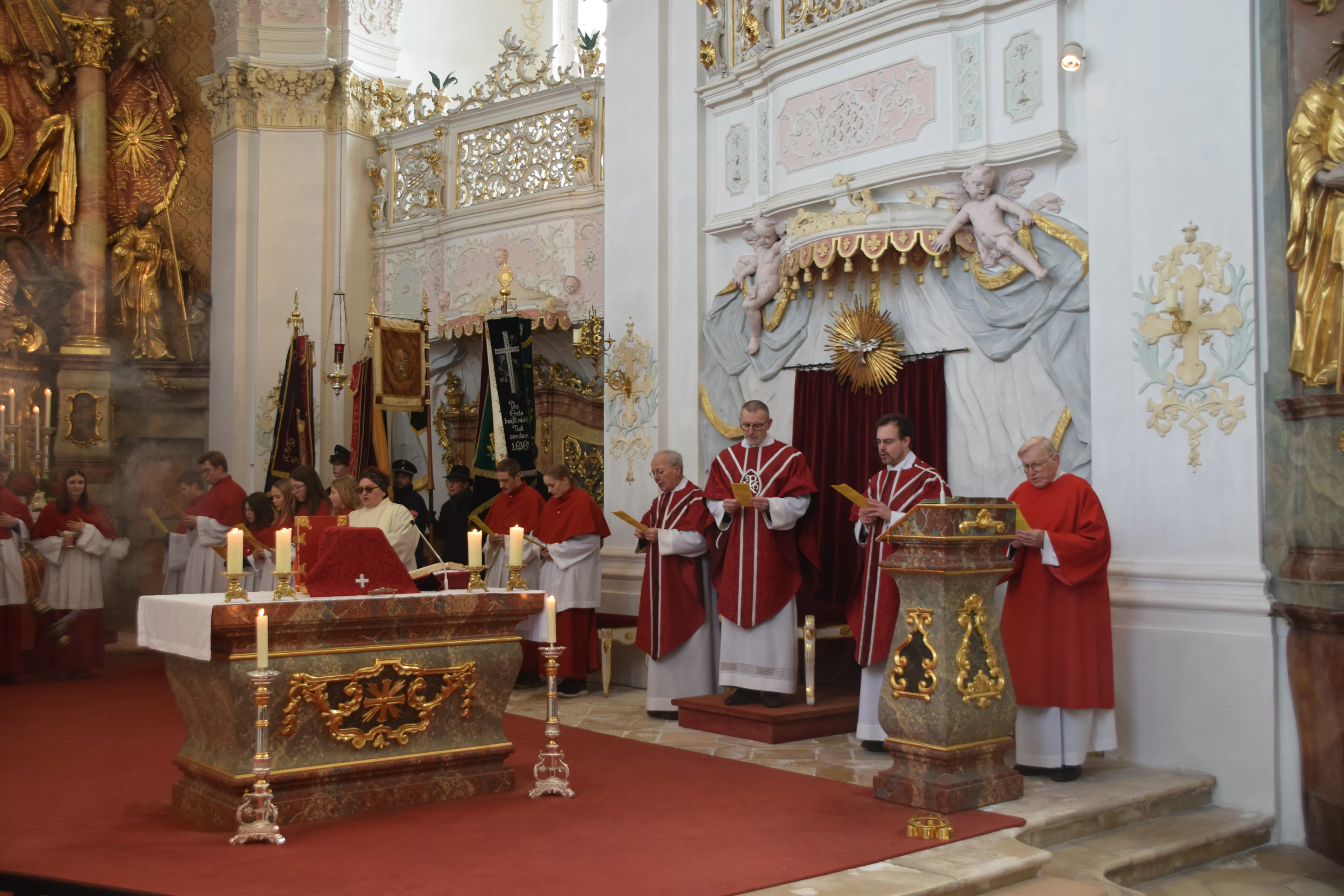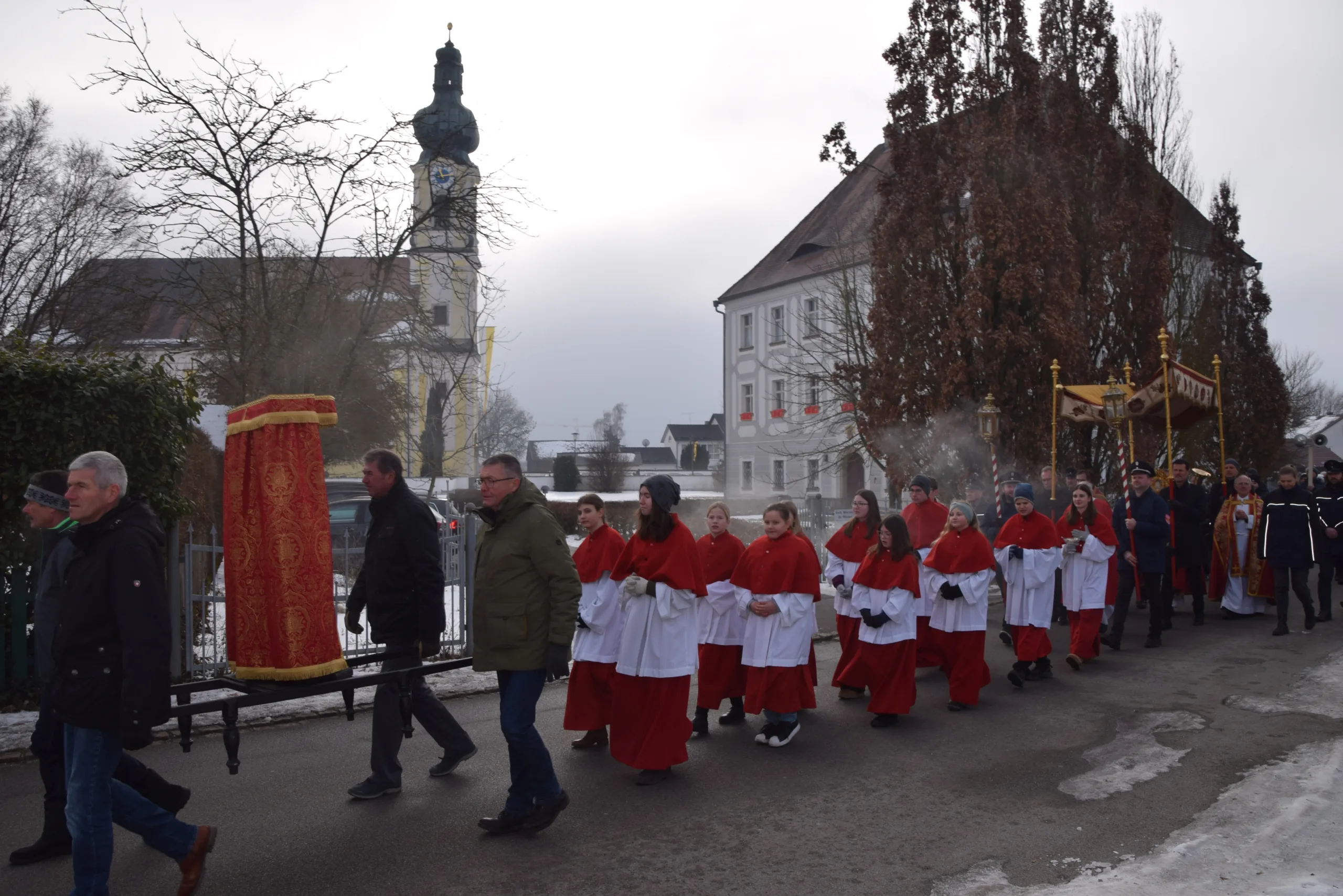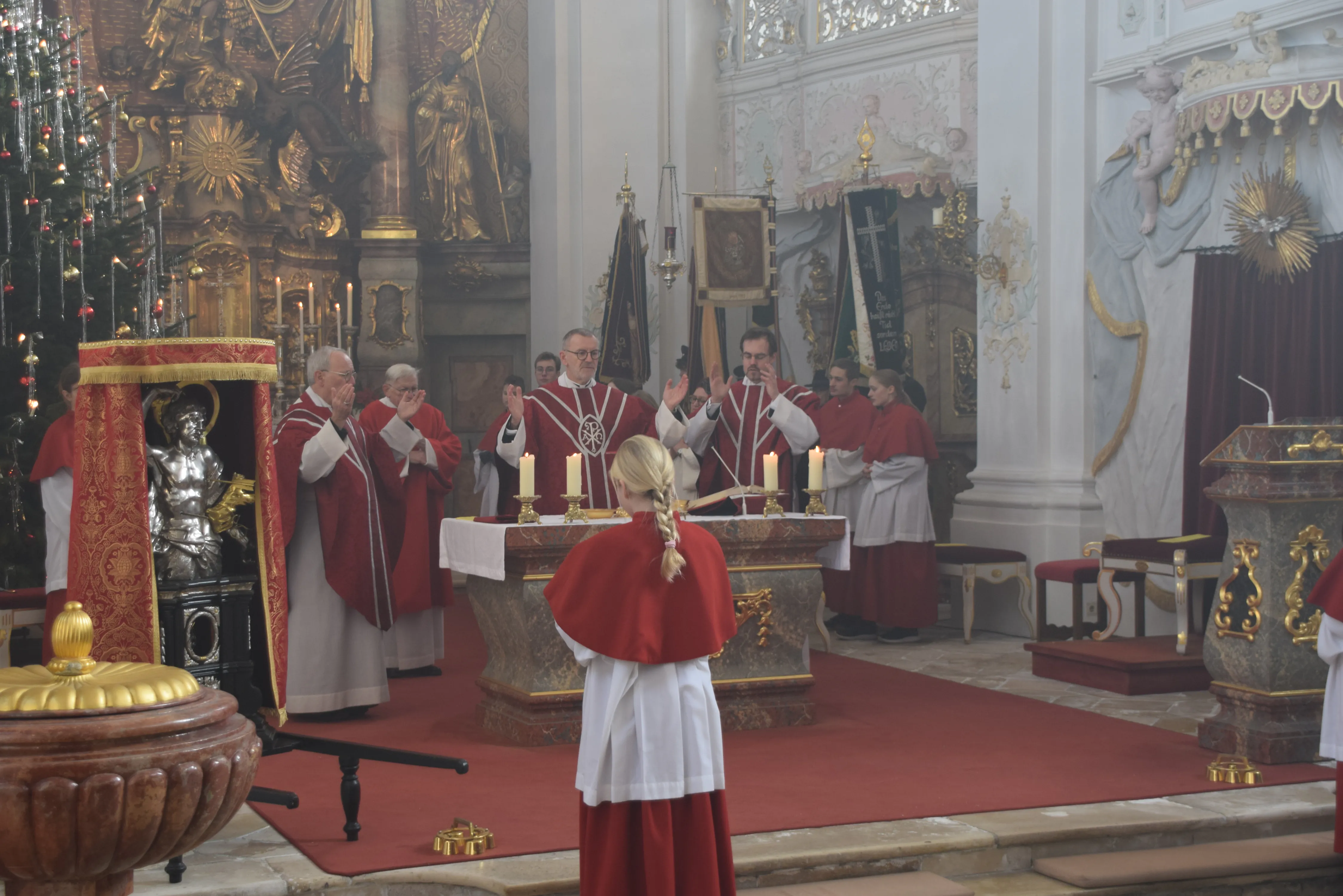 Stets zu Beginn des neuen Jahres begeht die Pfarrei Michaelsbuch um das Fest des Hl. Märtyrers Sebastian das Hauptfest der örtlichen Sebastiani-Bruderschaft. Seit 1699 wird dieser Festtag mit Amt und Prozession gefeiert. Als Hauptzelebrant und Festprediger konnte heuer BGR Pfarrer Dr. Thomas Vogl aus Waldsassen gewonnen werden. Als Konzelebranten waren Abt Athanasius und Ortspfarrer Pater Gregor sowie zur Assistenz Diakon Karl-Heinz Seiler mit am Altar. Trotz der eisigen Temperaturen beteiligten sich die Gläubigen in großer Zahl und ließen den Festtag bei einem geselligen Frühschoppen im Gamelberthaus aus- und nachklingen.